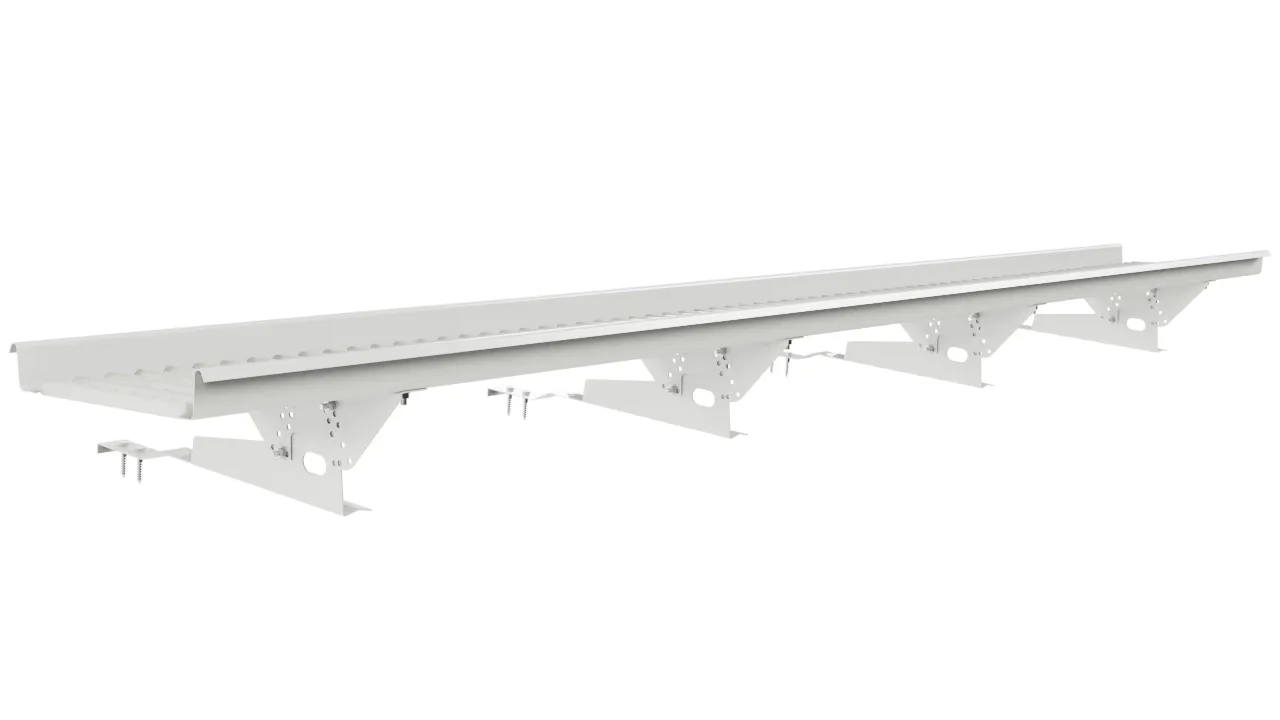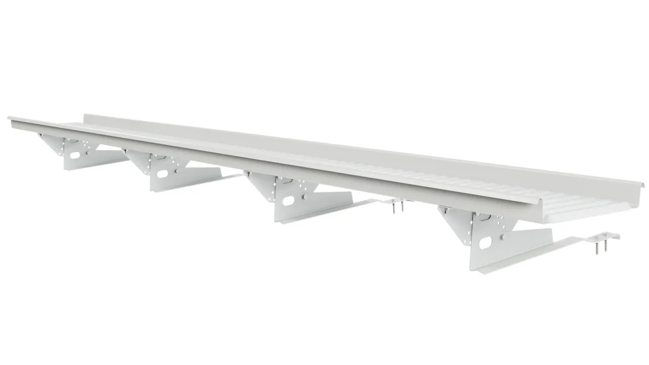 Переходной мостик Borge 3 м для натуральной черепицы — удлинённая секция с крюковыми кронштейнами, которые заводятся между рядами керамической или бетонной черепицы. Кронштейны не повреждают черепицу, распределяют нагрузку на несколько плиток.