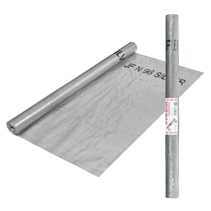 Ютафол Н 96 Сильвер - пленка повышенной прочности. Состоит из плетёной армирующей полиэтиленовой сетки, с обеих сторон ламинированной полиэтиленовой плёнкой. Армирующая сетка придает пленке высокую прочность, а двустороннее ламинирование обеспечивает хорошие пароизоляционные свойства.
