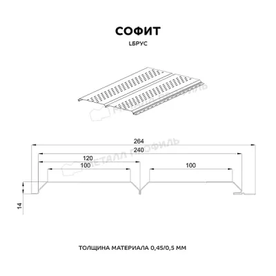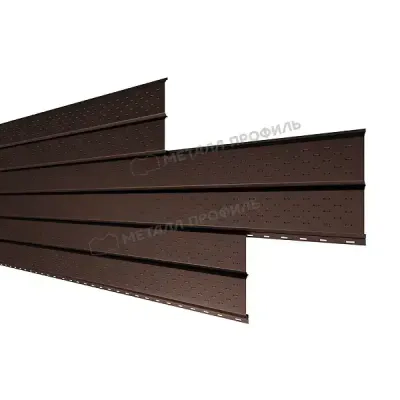 Софиты из стали — панели для подшивки карнизных и фронтонных свесов кровли из оцинкованной стали с полимерным покрытием. Негорючесть (класс НГ), устойчивость к ветровым нагрузкам и срок службы до 50 лет — главные преимущества от виниловых аналогов.