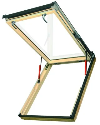 Эвакуационные окна с комбинированным открыванием — оптимальный выбор для жилых мансард. Комбинированный механизм позволяет открывать створку в среднеповоротном режиме до 40° для проветривания, а при экстренной эвакуации — до 68° одним движением.