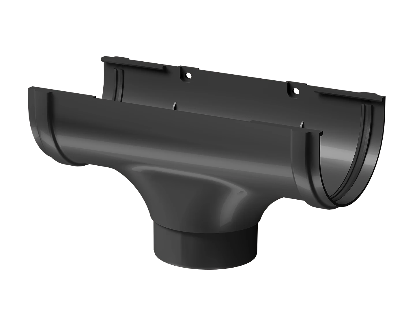 Воронка желоба предназначена для перпендикулярного соединения водосточного желоба и водосточной трубы в системе водостока. Переходный элемент организует слив воды из желоба в водосточную трубу.