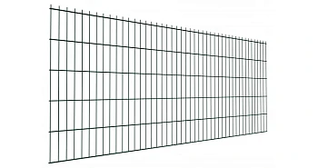 Конструкция идентична старшим моделям: сварная 2D-сетка с толщиной прутка 5 мм и ячейкой 200×55 мм. Вес панели 14,31 кг — удобно для самостоятельного монтажа. Крепление к столбам хомутами без сварки.