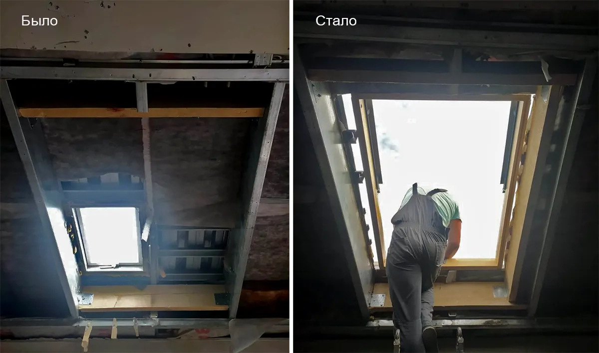 - Монтаж мансардного окна.